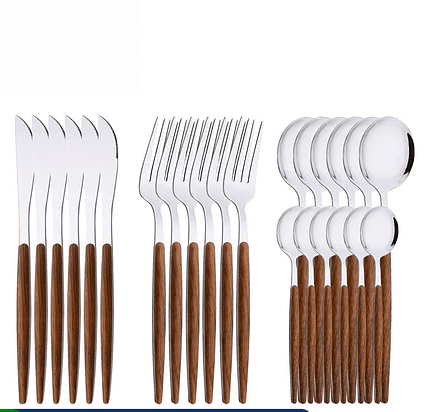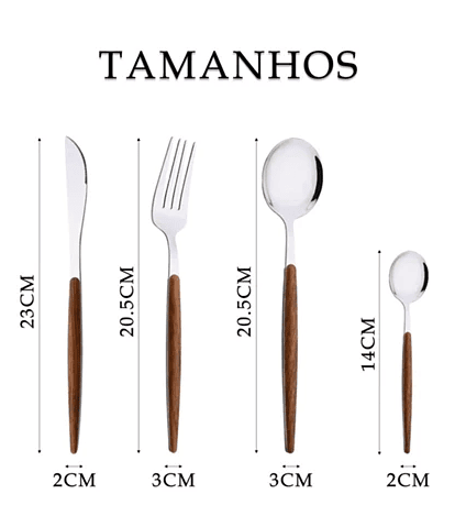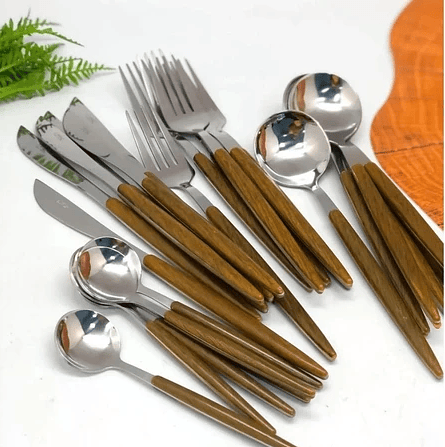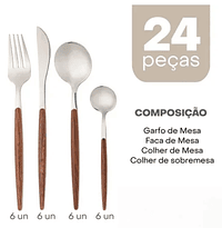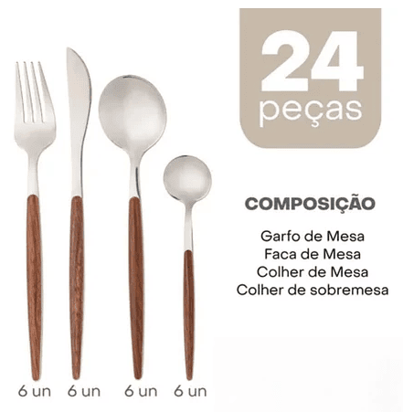 Este Kit de Talheres 24 Peças em Aço Inoxidável com Cabo de Madeira é a combinação perfeita entre beleza, resistência e funcionalidade, garantindo que cada refeição tenha um toque de elegância e qualidade.