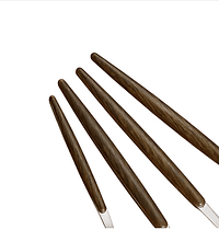Cabos anatômicos com textura amadeirada que proporcionam conforto e segurança no manuseio.