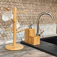 Feito de bambu, um material sustentável e resistente, este suporte é não só bonito, mas também muito durável. O bambu possui agentes bactericidas naturais que previnem o aparecimento de fungos e bactérias, tornando este suporte uma opção higiênica para armazenar suas xícaras.